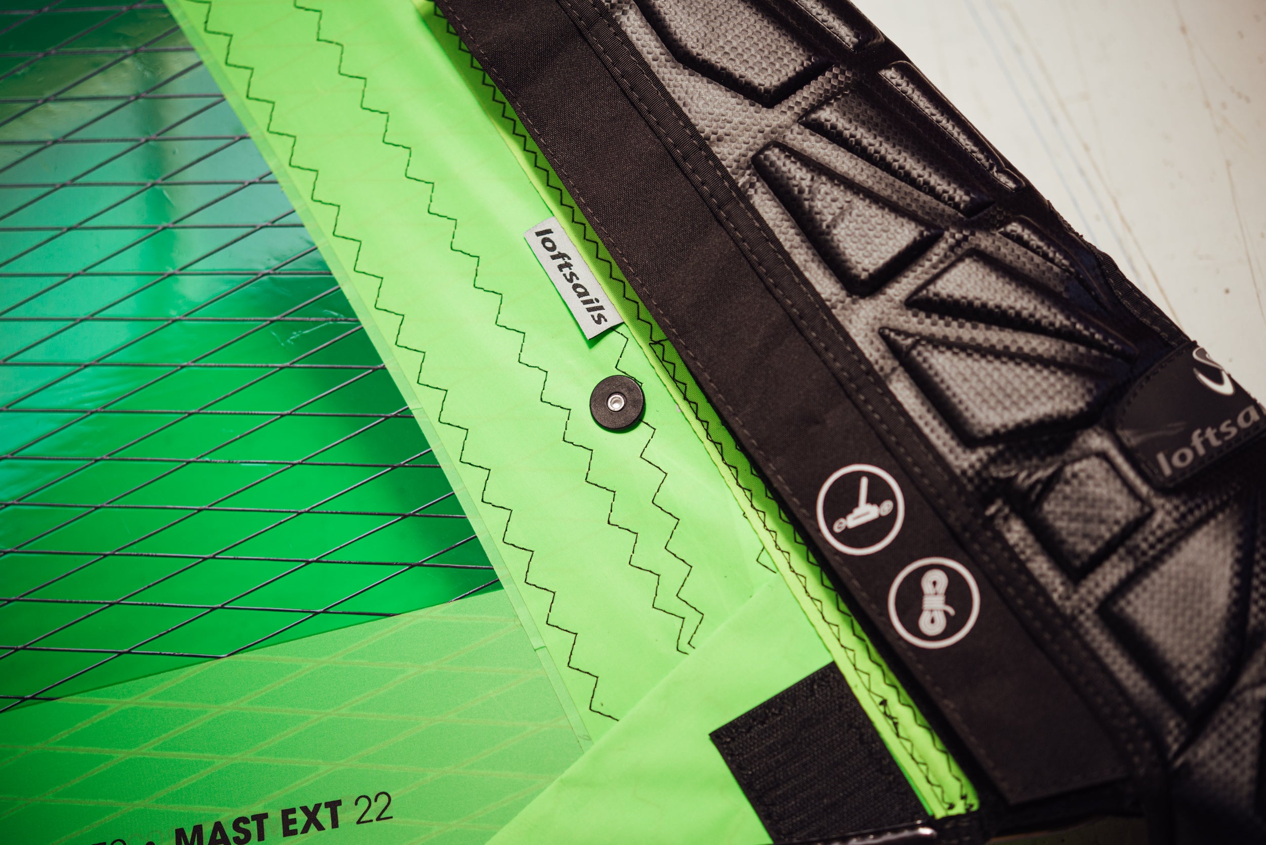 Each batten tensioner features dual side-loops that center and equalize the tensioner load to the sail batten, pocket and body.