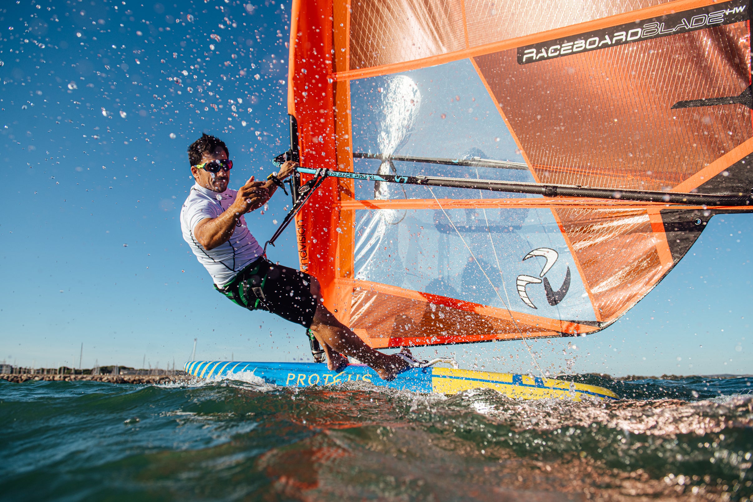 Middle wind raceboard racing often means sailing in patchy, building wind, with frequent shifts in direction and changing water conditions. The Raceboardblade 9.5 is tuned to remain balanced through these changes.