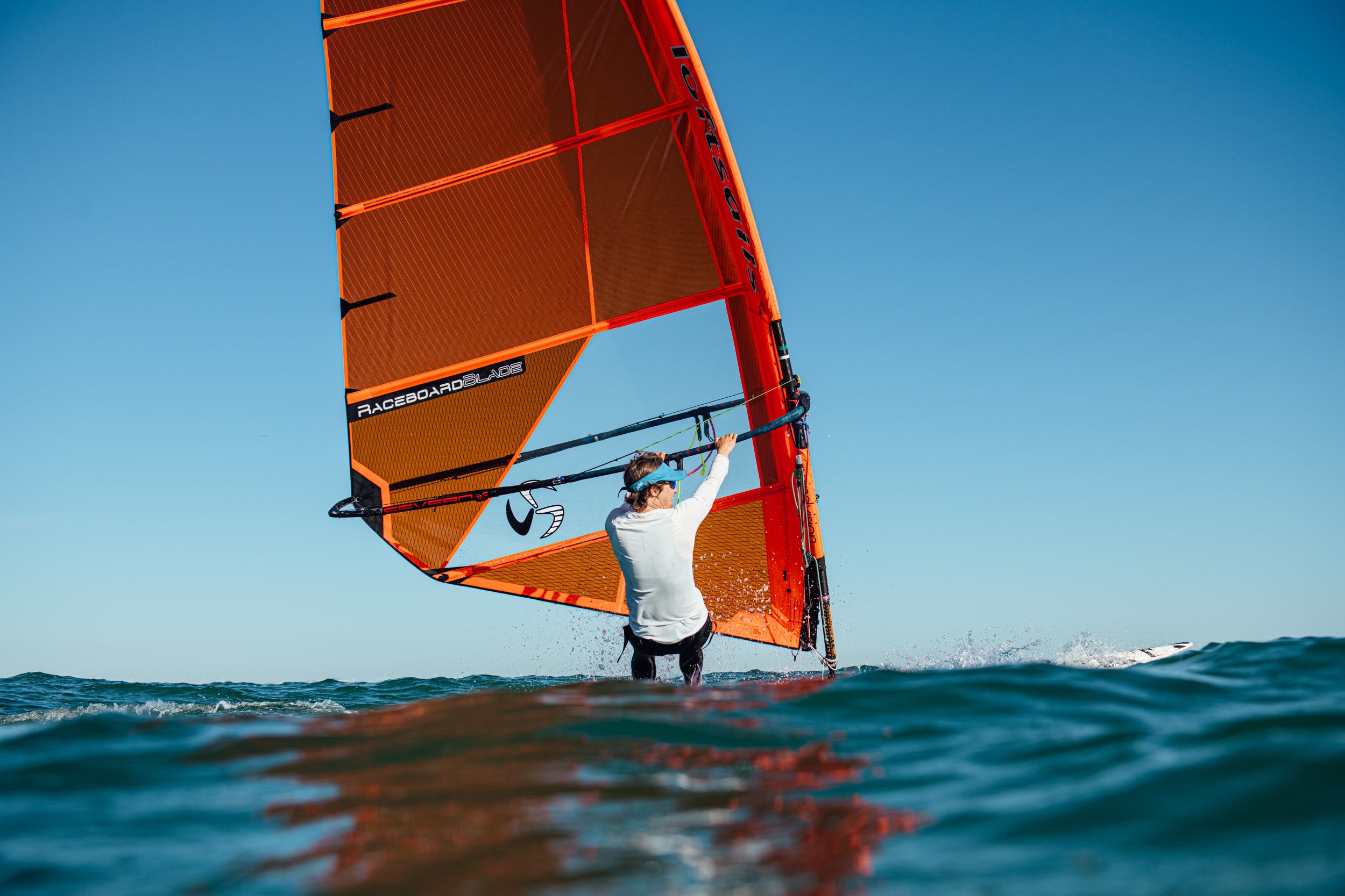 The Raceboardblade 9.5, a 6-batten (3-cam) sail, offers tactical flexibility on the racecourse. Positioned between the ULW and HW sails, it is specifically designed for the middle wind range, providing optimal performance and versatility.